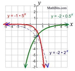 • if b > 1 (decreasing function), the right side of the graph approaches negative infinity and the left side approaches zero.