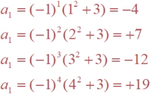 (-1)n (n2 + 3) yields -4, 7. -12, 19, ...