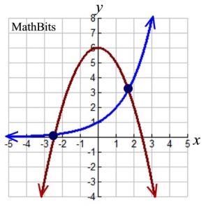 Using your graphing calculator (or utility), graph the functions f (x) = 2x and g(x) = -x2 + 6.