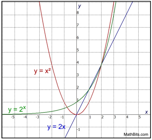 Quadratic: y = x2 Linear: y = 2x Exponential: y = 2x