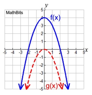 a) These graphs are a parabolas, so the parent function is y = x2. BUT, the parent function opens upward, and these "children" are opening downward. So, we will need to adjust the parent function to open downward, by reflecting it over the x-axis, to get g (x) = -x2.