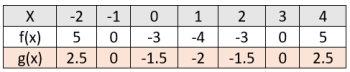 During the transformation, the outputs of f (x) were multiplied by a factor of ½, (k = ½),
