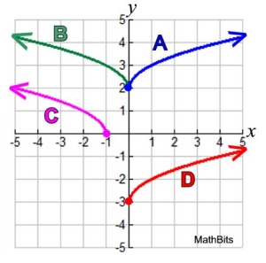 If the graph shown at the right is a transformation of the parent function , which choice is a possible equation for this function?
