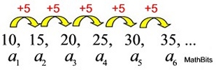 We know this is an arithmetic sequence (the same number, 5, is added to each term to get to the next term).