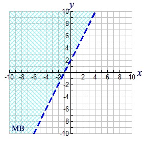 • The straight line boundary in this graph is dashed, meaning it is not included in the solution.