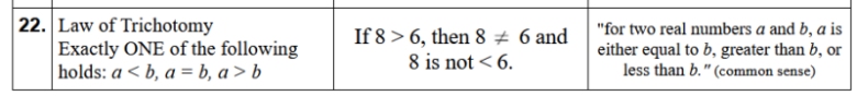 We saw in the Real Number Chart a property called the Law of Trichotomy.