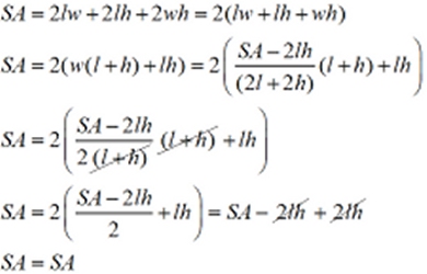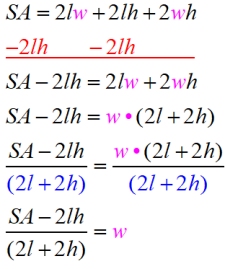 Solve for w. SA = 2lw + 2lh + 2wh |