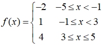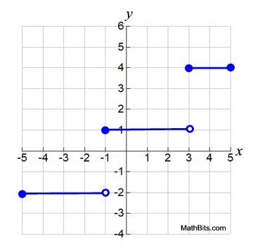 A step function is a piecewise-defined function in which every piece is a horizontal line segment (or a point or horizontal ray).