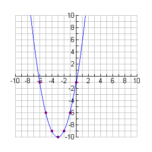 Since the x-coordinate of the turning point is -3, use this value as the center value for x in the chart. Include 3 values above and below the coordinate (-3,-10)
