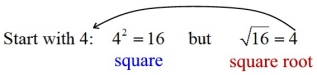 If we square 4 we get 16. If we take the square root of 16, we are back to 4.
