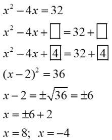 Take half of the x-term's coefficient and square it. Add this value to both sides (fill the boxes). Combine like terms.
