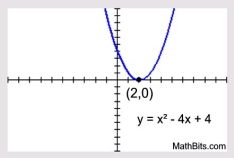 Notice that x2 - 4x + 4 = (x - 2)2 or (x - 2)(x - 2). The factor repeats, so the solution (root) repeats, giving only ONE solution.