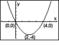 Graph the quadratic function y = x2 - 4x on the interval -1 < x < 5.